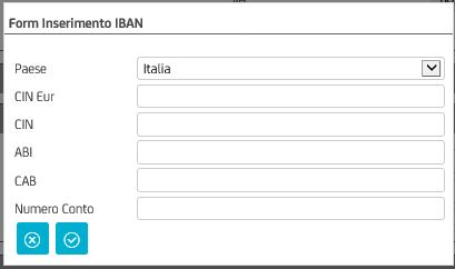Quest'ultimo consente di ricercare un nominativo nell'archivio anagrafico e caricare tutti i dati d'interesse che vengono richiesti in una data sezione specifica all'interno della schermata. Selezionando il tasto "rubrica" si visualizzerà la seguente schermata: ![]() Nella schermata visualizzata, selezionare il nominativo desiderato presente nella Lista Contatti. I dati ad esso associati saranno caricati automaticamente all'interno dei campi corrispondenti nella schermata di "Inserimento Nuova Transazione". La "Gestione Anagrafica" è coerente con l'operazione selezionata, ma è comunque possibile modificare la tipologia predefinita. Form inserimento IBANAccanto al campo "IBAN è possibile inserire il codice IBAN selezionando il tasto "Inserimento IBAN". Si visualizzerà la seguente schermata "Form – inserimento IBAN": ![]() Nella schermata d'inserimento è presente il campo "Paese", esso identifica il Paese della Banca nella quale il conto dell'utente è aperto: ![]() Gli altri campi da compilare presenti nel Form inserimento IBAN sono: